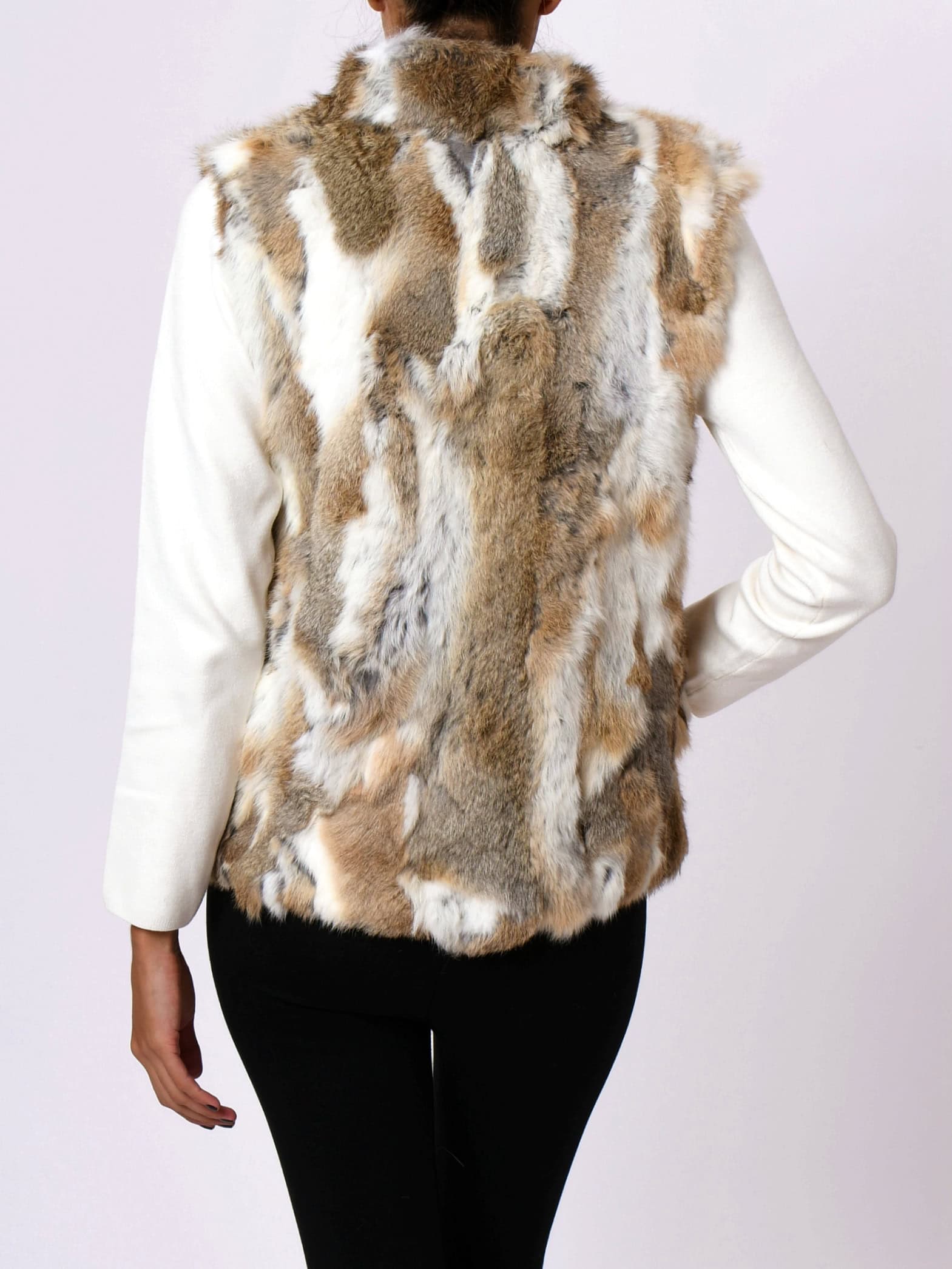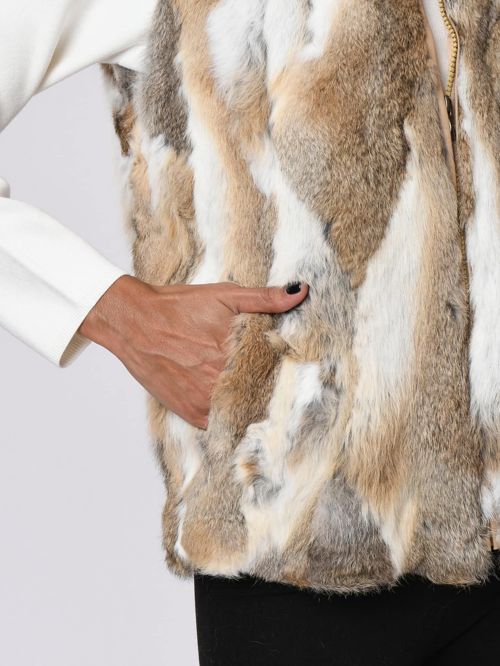 Chaleco pelo de conejo natural, con forro, cierre con cremallera y dos bolsillos laterales. No está incluido ningún accesorio.