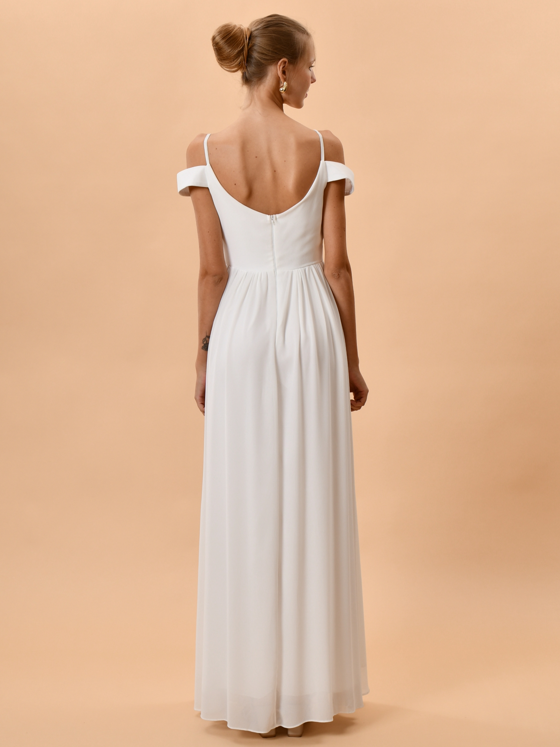 El vestido de novia con hombros descubiertos es la elección perfecta para las novias que desean combinar elegancia, romanticismo y un toque moderno en su gran día. Este diseño resalta delicadamente la silueta femenina gracias a su corte fluido y a la caída ligera que ofrece el exquisito tejido gasa, aportando movimiento y una sensación de ligereza única. Ideal para ceremonias al aire libre, celebraciones íntimas o para quien celebra su boda civil, este vestido se adapta a diferentes estilos de enlace con una sofisticación natural.