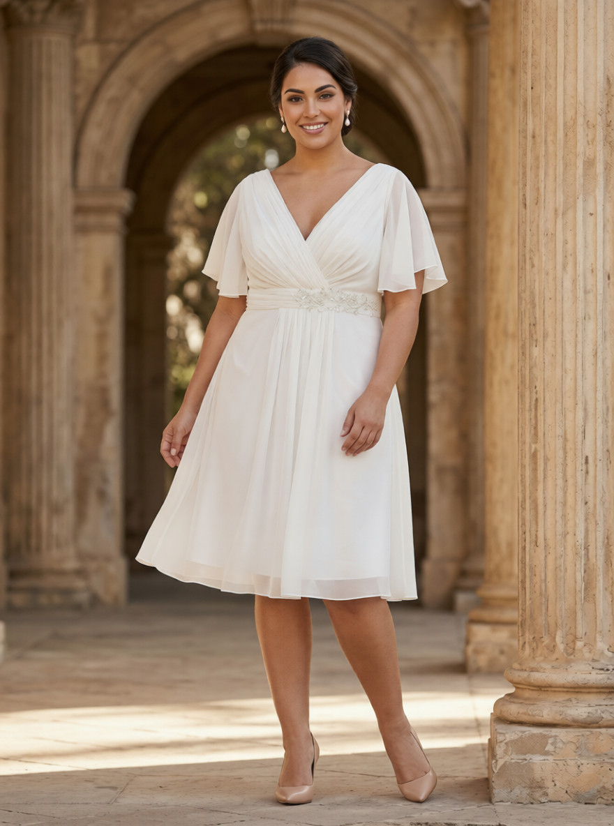 Vestido fiesta corto mangas volantes con pedrerías – Tallas Grandes