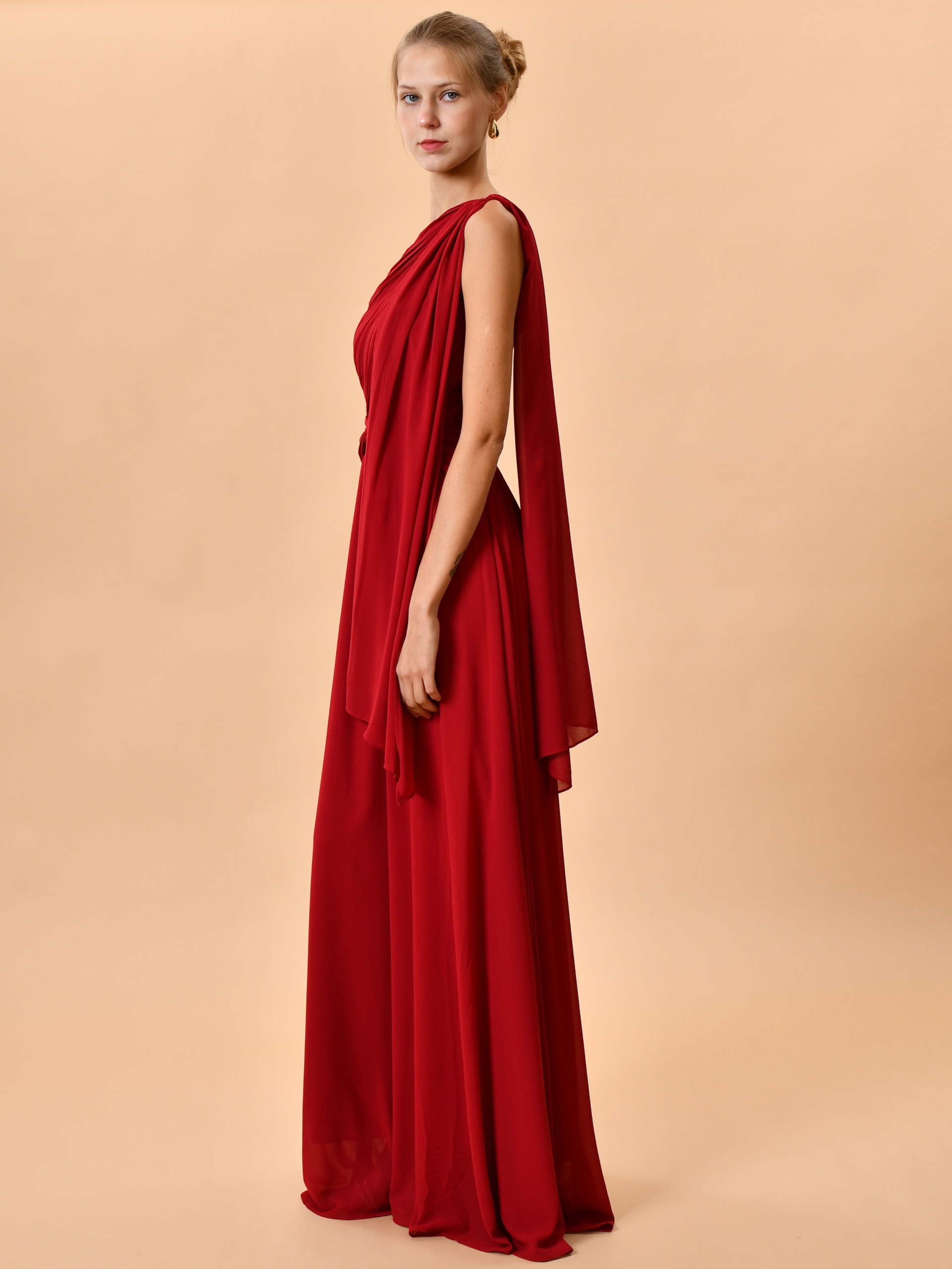 Combínalo con accesorios brillantes, un recogido elegante y unas sandalias de tacón fino para lograr un look digno de alfombra roja. O bien, añade detalles más discretos si prefieres un estilo clásico y atemporal. Su versatilidad permite adaptarlo a diferentes tipos de eventos y estilos personales, haciendo del vestido fiesta largo asimétrico estilo griego una pieza imprescindible en tu armario de ocasiones especiales.